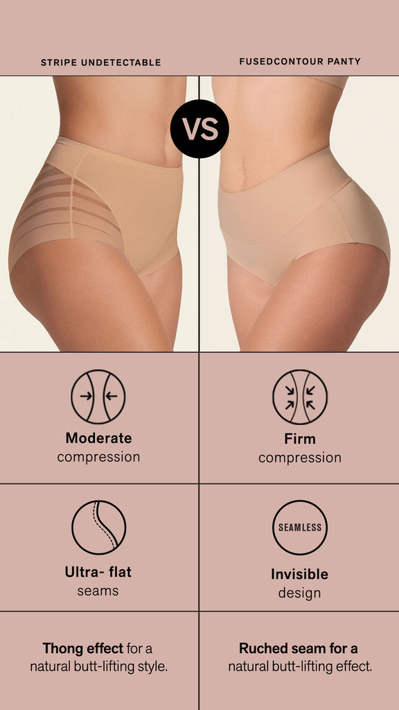 If you need greater compression and shaping, we recommend opting for high waist shaping panty. These garments are made with stronger materials and feature reinforced panels in key areas to provide you with enhanced support and definition.