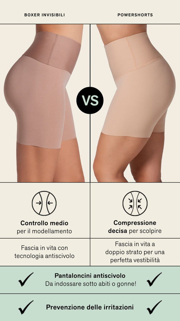 La guaina corta è la soluzione per una silhouette più definita. Grazie al suo design innovativo, la guaina a pantaloncini offre un effetto lusinghiero che valorizza i glutei, dando loro una forma più definita senza appiattirli. È l'accessorio ideale da abbinare a gonne, abiti o pantaloni stretti, perché dà quel tocco naturale ed elegante alla silhouette.