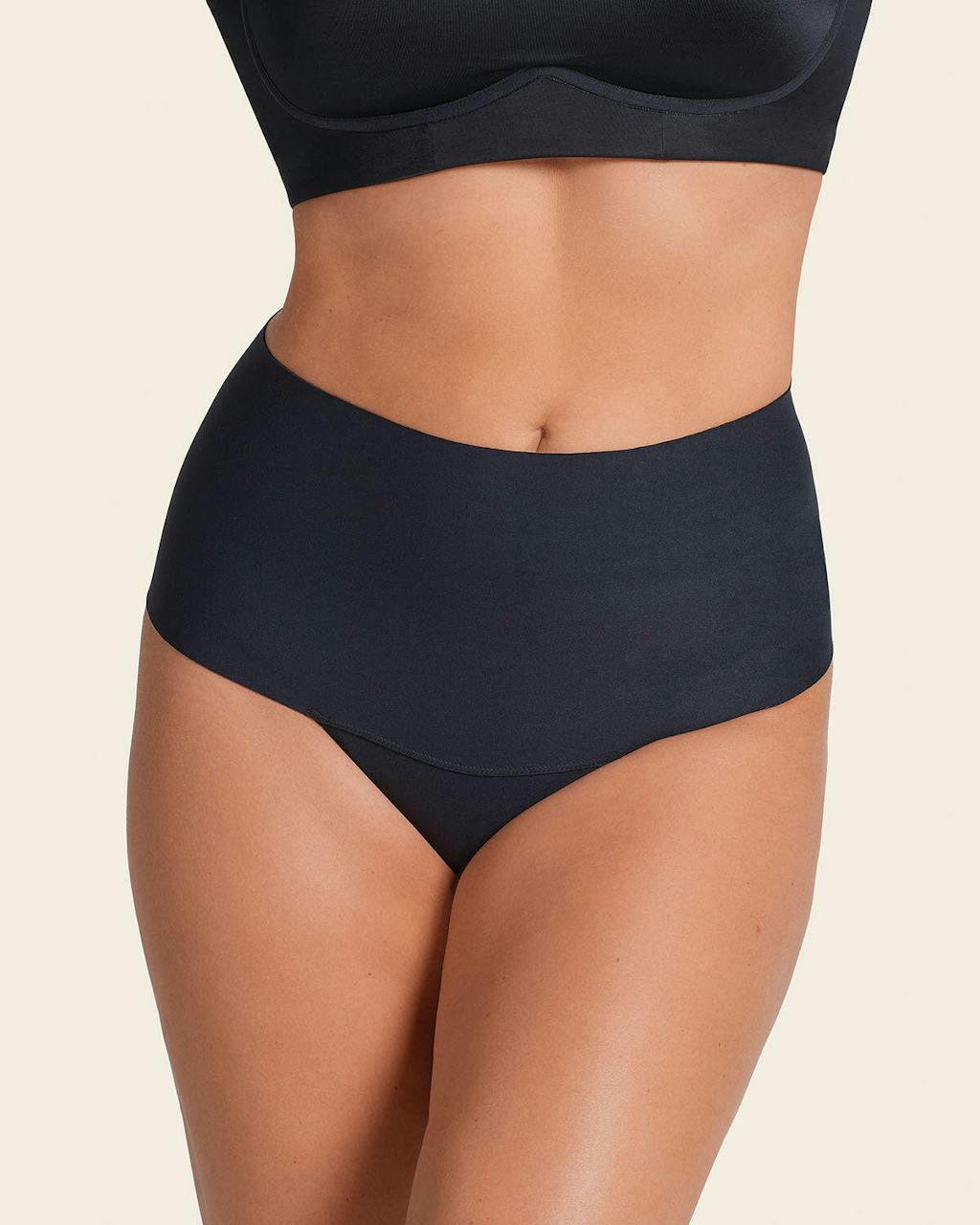 - A high-waisted panty with built-in firm compression to flatten the tummy.